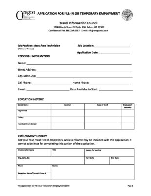 Rest Area Technician application. (PDF)